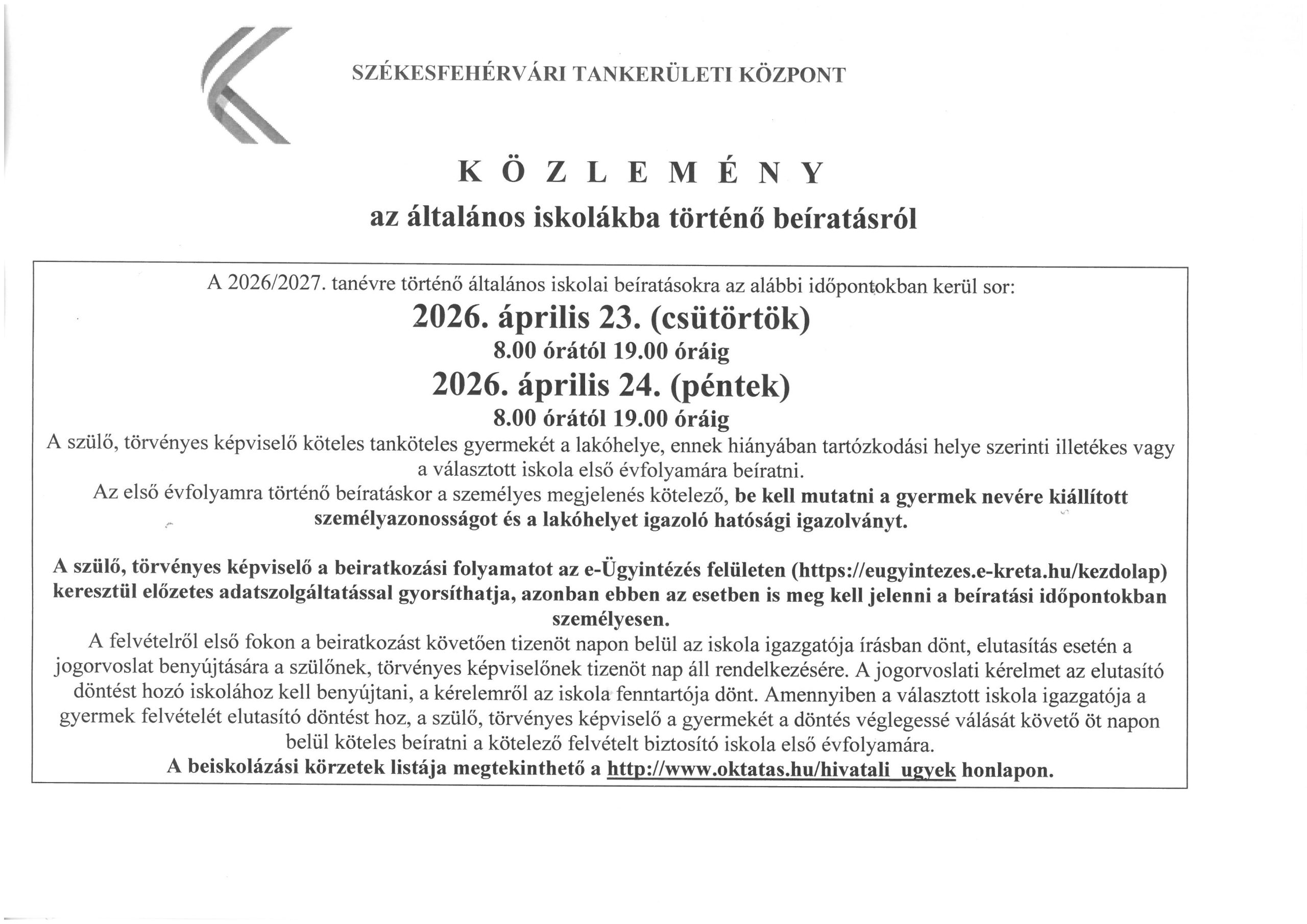 Beiratkozás az alábbi napokon lesz esedékes! Várunk titeket szeretettel!